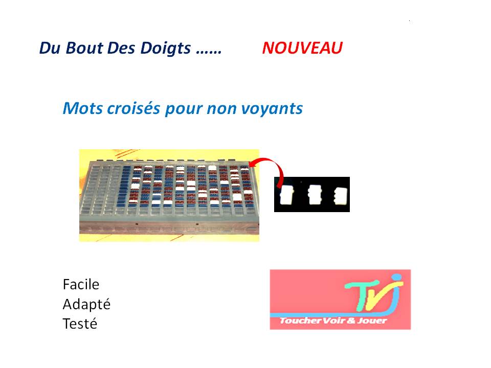 Un dispositif adapté pour que les non voyants puissent jouer au scrabble avec leurs amis déficients visuels ou non.